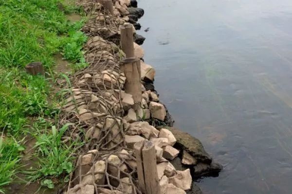 木樁邊柵護(hù)岸是在打樁露土的上部再打上木板或麻繩等,既能固土護(hù)岸,又能保護(hù)邊岸。