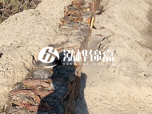 - 落葉松 :東北寒地松木密度高(氣干密度 0.6-0.7g/cm³),天然耐腐性強,適合長期浸水的河道核心區(qū)。某長江支流護坡工程使用落葉松木樁,10 年浸泡后樁體損耗率不足 5%。